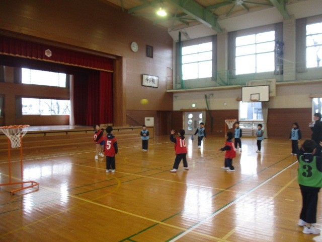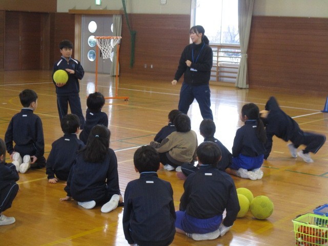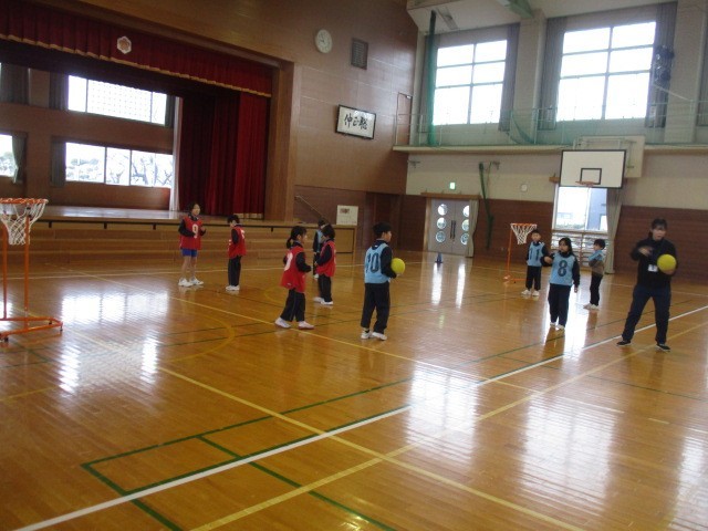 2年生の1時間目は、体育科の学習でした。体育館でセストボールをしていました。