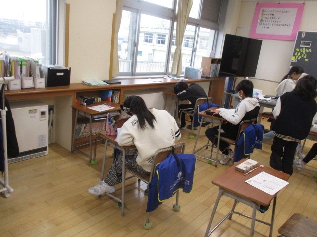 5年2組の1時間目は、国語科の学習でした。テストの丸付けをしていました。