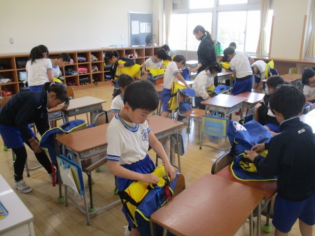3年生は並ぶ訓練に加え、ライフジャケットの装着練習も行いました。