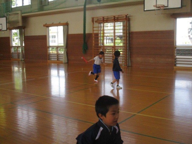 大きく手を広げ、その広がった手にしっかりとバトンを押し込みます。