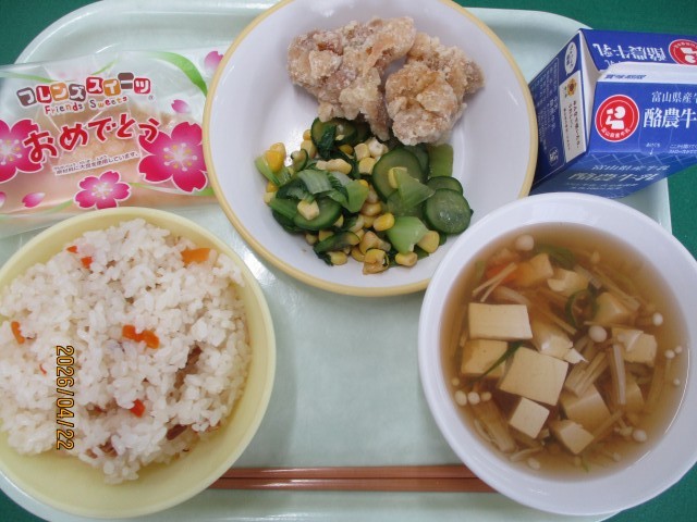 ・ちらし寿司 ・牛乳 ・鶏肉のから揚げ