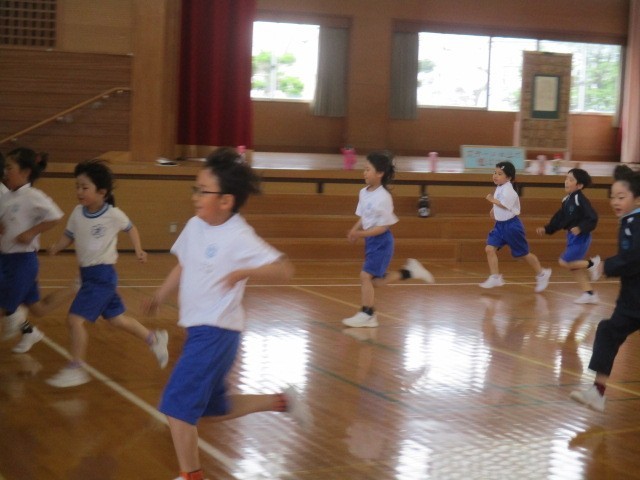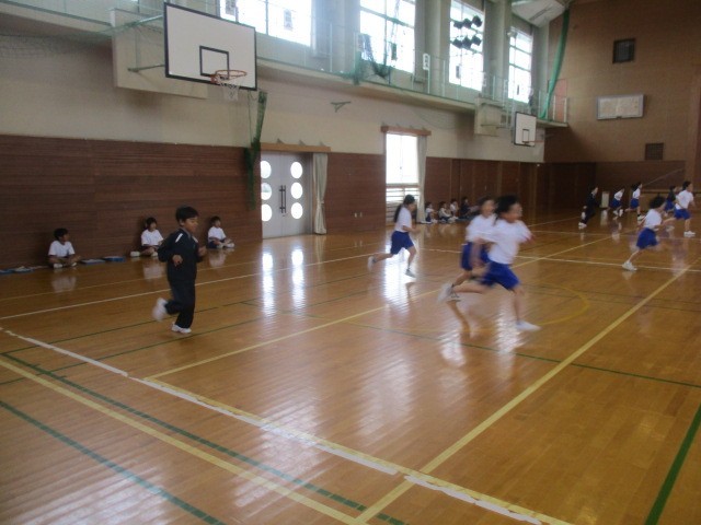 体育館でシャトルランをしました。