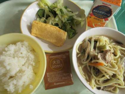 今日の給食 公開日 2020/11/25 更新日 2020/11/25 給食室から とんこつラーメン ベーコンロールエッグ グリーンサラダ 大豆ふりかけ オレンジジュース 今日は、子供たちの大好きなラーメンの日。どのクラスも完食でしょうか。
