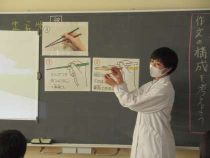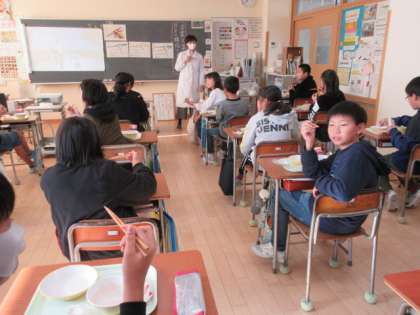 栄養士さんから正しい箸のもち方の話を聞き、給食中の各自の箸の使い方を確認しています。各クラスに練習用キットも用意したので、1月の給食週間までに上手になるといいですね。ご家庭でもぜひご確認ください。
