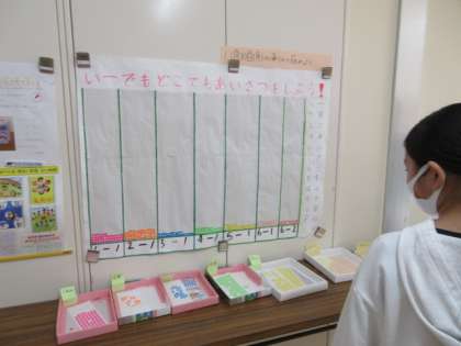 いつでも、どこでも、だれにでも、気持ちのよいさわやかな挨拶ができるように、委員会の子供たちが企画したあいさつ運動を行っています。校内でもすれ違いざまに「こんにちは」と挨拶をする姿も見られるようになってきました。