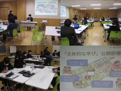 その後、教員も子供たちが取り組んだ活動を体験し、ICT機器を活用して、互いの主張についてコメントし相互評価するワークショップを行いました。「子供たちの主体的な学び」を生み出すための方策について話し合うよい機会となりました。