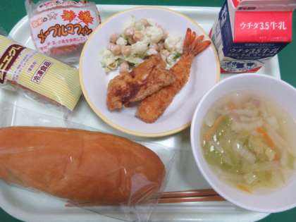 今日の給食 公開日 2020/12/08 更新日 2020/12/08 給食室から 今日は、選択献立の日です。 豚肉のフリッタorえびフライ メープルマフィンorエクレア どちらを選んだのか、なぜそれを選んだのか、食べての感想を含め、ぜひ話をしてみてください。
