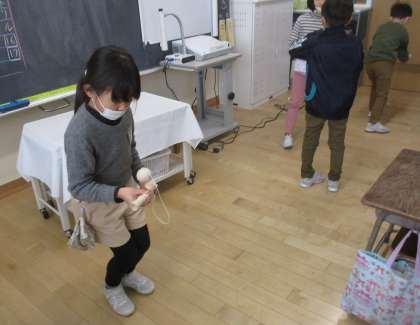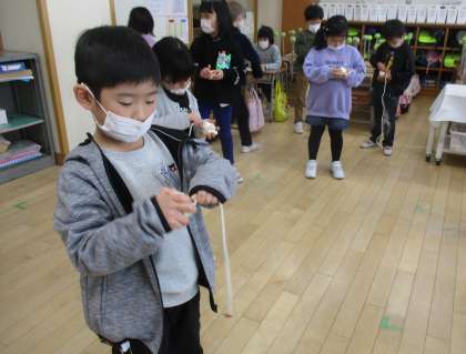 生活科で「昔の遊びにチャレンジ」の学習を始めました。こまとけん玉を初めてする子供も多く、教え合いながら楽しく練習しています。少しずつこつをつかんでできるようになるといいですね。