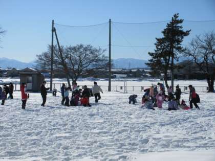 ファミリー活動「くらがきっこ雪まつり」 公開日 2021/01/20 更新日 2021/01/20 学校から 青空の下、ファミリー班ごとに雪に親しんでいます。グラウンドいっぱいに広がり、真っ白な雪を協力して集め、雪像づくりに挑戦しています。
