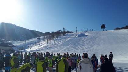 絶好のスキー日和となりました。牛岳温泉スキー場でスキー学習を行います。開講式を終え、レッスンが始まりました。