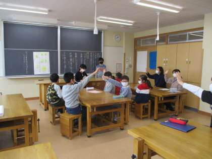 ひいらぎタイムに1〜5年の学級代表が集まり、代表委員会を開きました。5年生が中心となって進行し、「未来へはばたけプロジェクト」の目当てや活動内容等について真剣に意見を出し合いました。下級生や先生方の前で、緊張しながらも一生懸命伝えようとする5年生の姿に頼もしさを感じました。