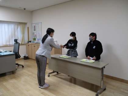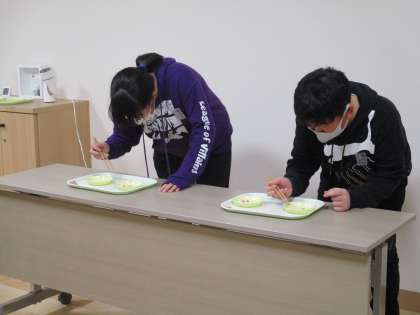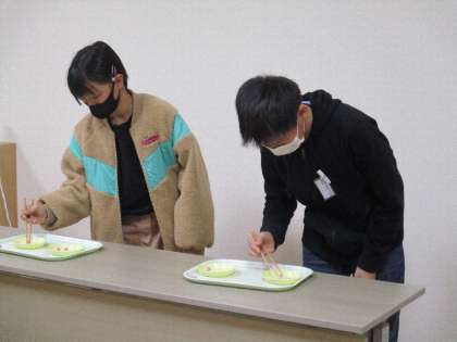代表の子供たちは、上手にはしを持ち、速いスピードでお皿のスポンジを移動させていました。さすが、高学年でした。披露した後は、校長先生からはし名人認定証をもらいました。