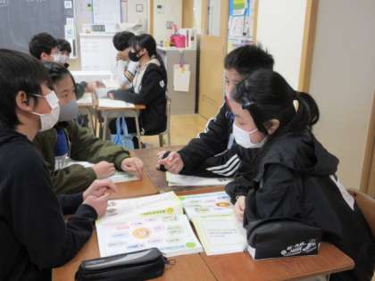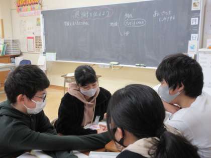 感謝の気持ちをどのように表したらよいか、グループごとに意見交換しています。