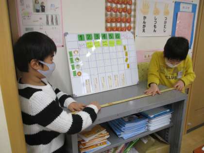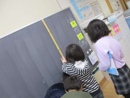 今日の体験から、1mがどのくらいの長さなのかという感覚をつかむことができたようです。