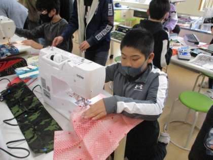 縫い初めと縫い終わりを返し縫いしたり、直角にきれいに縫うために針を刺しっぱなしで布を回したりするなど、基本的な操作に気を付けて安全に製作活動に取り組みました。