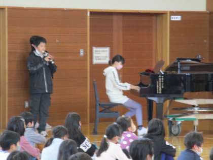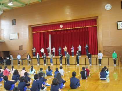 これまで下級生にたくさん卒業を祝ってもらい、交流タイムに一緒にゲームをしたり、プレゼントをもらったりしました。そのお礼に合奏をしました。音楽の時間に練習した「木星」を演奏しました。下級生のみんなに感謝の気持ちが伝わっているといいですね。