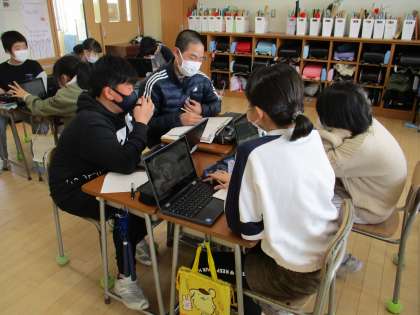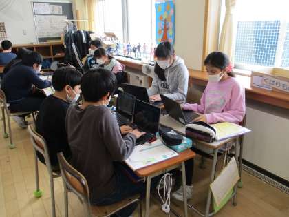 先日、一人一台ずつクロムブックを使うことできるようになり、早速授業で活用しています。今日は、国語の発表資料を作ったり、道徳の意見交換をしたり、様々な授業で使っています。子供たちは、初めての操作でもすぐに慣れ、上手に活用しています。