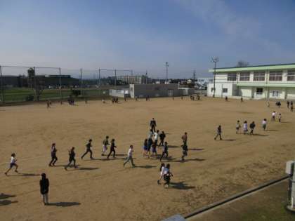 さわやかな青空の下、各自の目標達成を目指して、元気よくグラウンドを走っています。時間か周回数の目標を決め、長距離走に取り組んでいます。全校で持久力の向上を目指します。