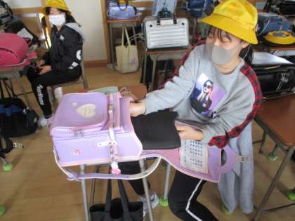 持ち帰るのを以前から楽しみにしていたようで、嬉しそうにランドセルに入れる子供たち。家庭での約束をしっかりと決めて、学習に活用してほしいと思います。