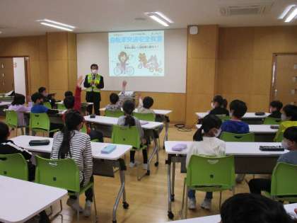 今日は自転車交通安全教室を行いました。講師の方の話をしっかり聞き、自転車を乗るときのルールと安全確認を意識して自転車に乗ることができました。実際に学校の外で自転車に乗るときに今日教わったことに気をつけると子供たちは意識していました。