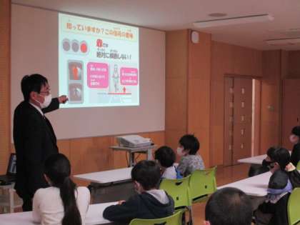 気持ちのよい風が吹く中、自転車安全教室が行われました。5年生は交通規則や自転車の安全な扱い方について教室で学んだ後、グラウンドで自転車に乗っての実技を行いました。