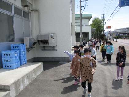 生活科で学校探検をしました。前回は、校内をみんなで歩きましたが、今回は校舎の周りを探検しました。外から見ると、どこがどこの部屋か分からず、子供たちは「ここは保健室かな?」「たぶん給食室じゃないかな?」と考えながら、見ていました。