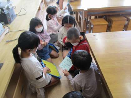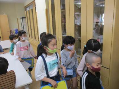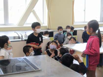 2年生が、学校を案内してくてました。いろいろな教室を案内してくれ、途中にクイズももあり、子供たちは楽しんで、学校内を歩きました。