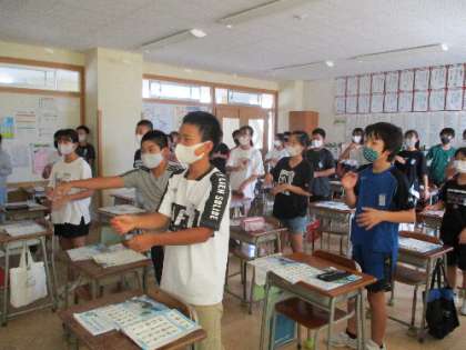新しく来られたALTの先生と一緒に、ダンスやクイズを交えながら新しい語句や表現を学びました。授業の後、「楽しかった!」と嬉しそうに話す子供もいました。これからまた外国語を楽しく学んでいきましょう!
