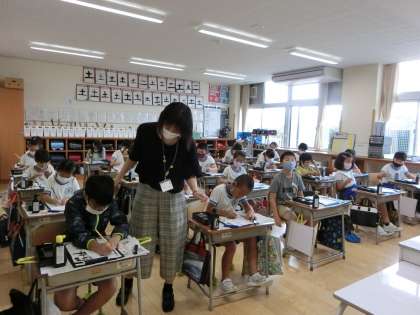 はじめての小筆 公開日 2021/09/02 更新日 2021/09/02 3年 書写の時間に、小筆を使って、自分の名前を書く練習をしました。小筆の持ち方などを確認した後、自分の名前の手本を見て真剣に取り組みました。回数を重ねるごとに、準備や片付けもすばやくできるようになってきています。