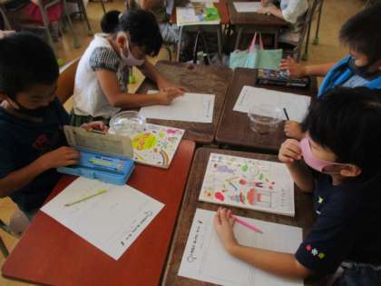生活科の学習で、見付けた生き物の観察をしました。これまで朝顔の観察で色や形、大きさ、模様などを見て描くことを学習してきたので、今回も詳しく描こうとじっくり見ていました。さらに生き物なので、動きにも注目している子もいて、子供たちは生き物が動く様子に釘付けでした。