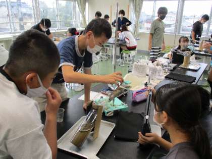 理科「大地のつくり」の学習で、グループごとに実験をしました。