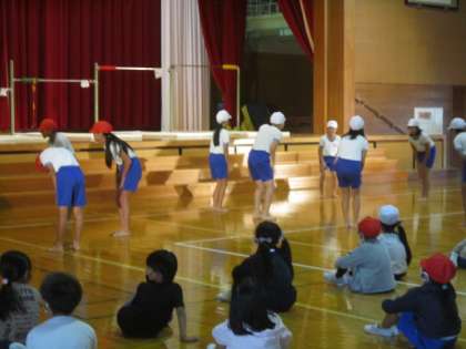 今日は校内での学習成果発表会でした。5年生はこれまで練習を重ねてきたフォークダンスと鉄棒運動を披露しました。無事すべてをやり終えニコニコとした笑顔でステージから戻ってきた子供達でした。