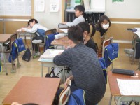理科の学習で太陽と影の向きについて調べました。方位磁針の使い方を確認したあと、外に出て画用紙に映った影をマジックでなぞり記録を取りました。この後、結果を基に分かったことをまとめていきます。