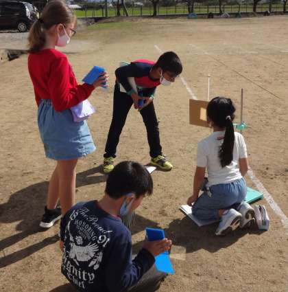 理科の学習で光(日光)の性質について調べる活動を行いました。虫眼鏡を使って光を集めたり、鏡を何枚も使って光を反射させたりすることで、明るさや物の温まり方の違いを見つけていました。