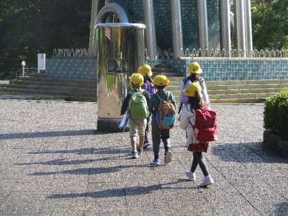 1、2年生で太閤山ランドへ校外学習に出かけました。午前中は、グループごとにオリエンテーリングをしました。どのグループも、みんなで話し合いながら道を進んだり、クイズの答えを考えたりしていました。