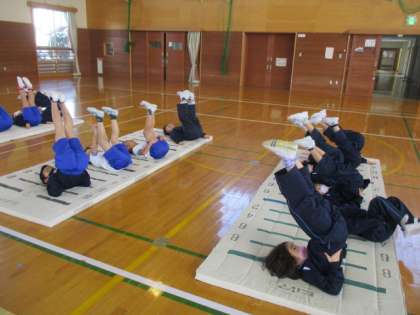 体育科では、マット運動遊びをしています。今日は、背中支持倒立やゆりかごじゃんけんや前転がりをしました。高く足を上げて少しでも止まれるようにとがんばったり、ゆりかごをしながらじゃんけんを楽しんだりするなど、一生懸命に取り組んでいました。前転がりは、難しそうだと言いながらも、挑戦する姿が見られました。少しずつマット運動の技に挑戦していこうと思います。