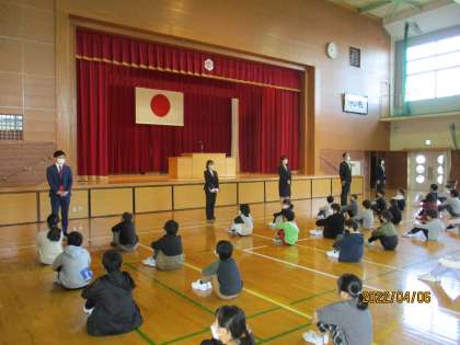 校長先生の声掛けで、子供たちは身長が10cm伸びるくらい姿勢を正し、学級担任の先生に、「よろしくお願いします。」の挨拶をしました。