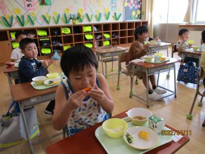 担任の先生と、おはしの持ち方を確認しながら、おいしくいただきました。