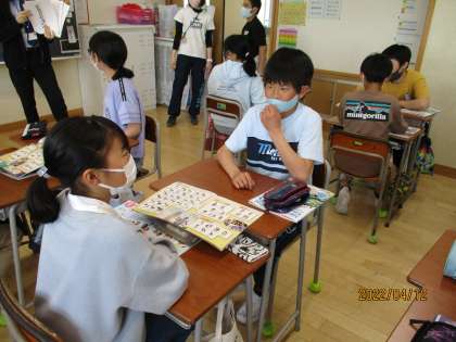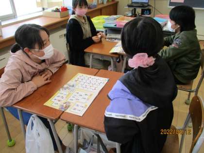 新しく着任されたALTの先生と初めての外国語の授業です。 ペアになって、相談しながら学習しました。