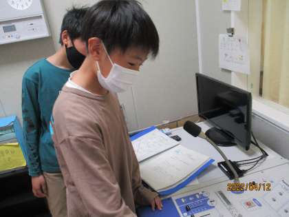給食の時間が楽しくなるよう、委員会の子供たちが協力して、お昼の校内放送を担当しています。