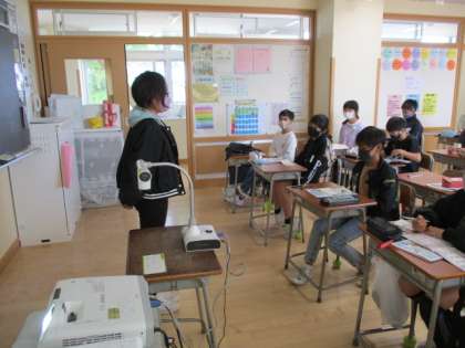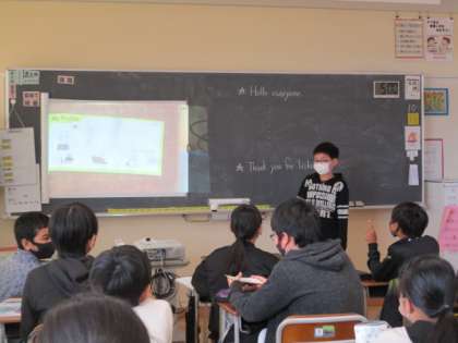 外国語では、「This is me!」の学習をしています。今日は、自分のプロフィールを発表しました。挨拶から始まり、自分の名前、誕生日、好きな物や好きなことなど、これまで学習してきたことをもとに全員が発表しました。緊張していた子供もいましたが、みんな上手に話すことができました。また、聞いている子供たちも、挨拶を返したり、拍手をしたりと友達の発表を楽しんでいました。