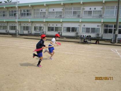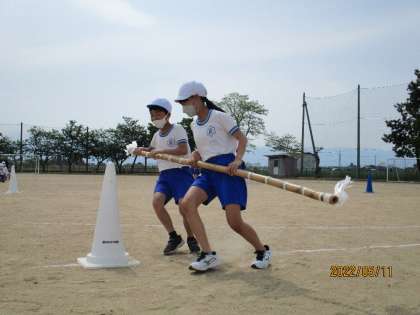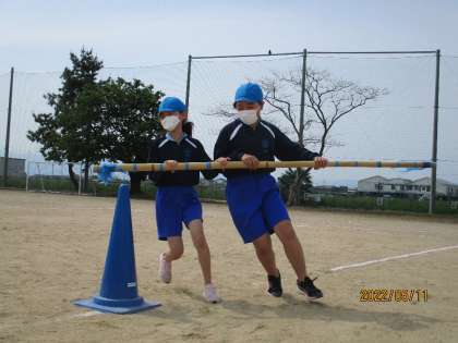 今日は、5・6年生が協力して行う、団体競技の練習をしました。