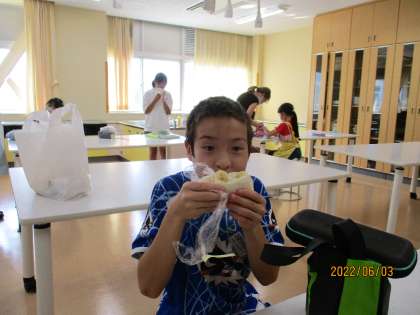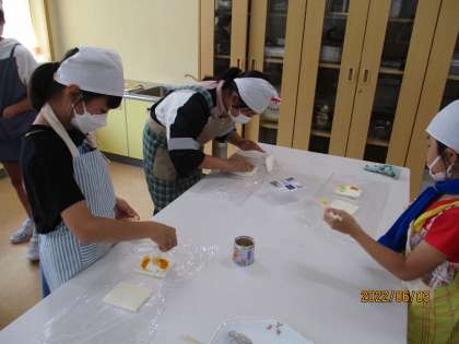 クリームを絞り、思い思いにフルーツを乗っけて、オシャレでおいしいサンドウィッチを作っていました。