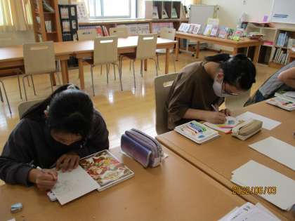 今日は図書室の本を見ながら、イラストを描きました。