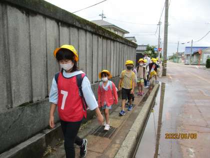 道中では、交通ルールを守り、1列で歩く姿や、声を掛け合って横断歩道を渡る姿が見られました。