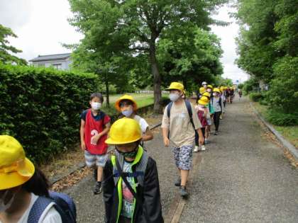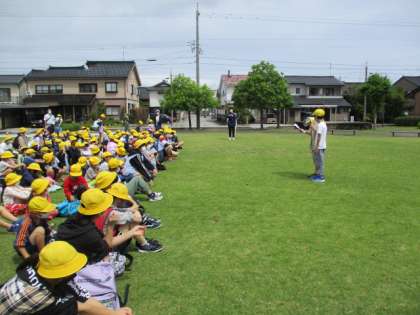 四方公園へファミリー遠足に行ってきました。天候が心配されましたが、全校で四方公園に行ってくることができました。公園では、ファミリー対抗ゲームとファミリーごとの活動をしました。ゲームでは、じゃんけんやクイズをしました。どのファミリーもみんなで相談して、ゲームに勝つととても嬉しそうでした。後半のファミリーごとの活動では、鬼ごっこをしたり、遊具で遊んだりとファミリーのみんなが楽しめる活動を考えて、遊んでいました。子供たちは、たくさん歩いて疲れた様子も見られましたが、たくさんファミリー活動ができて、楽しかったようでした。