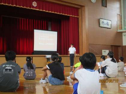生徒指導の先生から、全校の子供たちへ『友達とのお金の使い方』と『ごみの話』がありました。