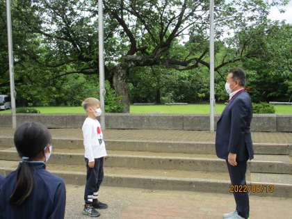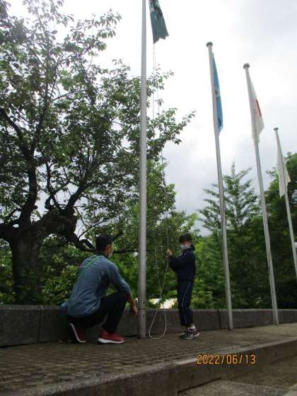 所の職員の方々に挨拶し、校旗を掲揚しました。