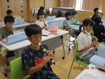 リコーダーや鍵盤ハーモニカで、君が代を演奏しました。