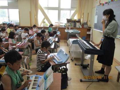 子供たちは、どうやったらひけるかな…と、指の動かし方を工夫しながら、かえるの歌を演奏していました。